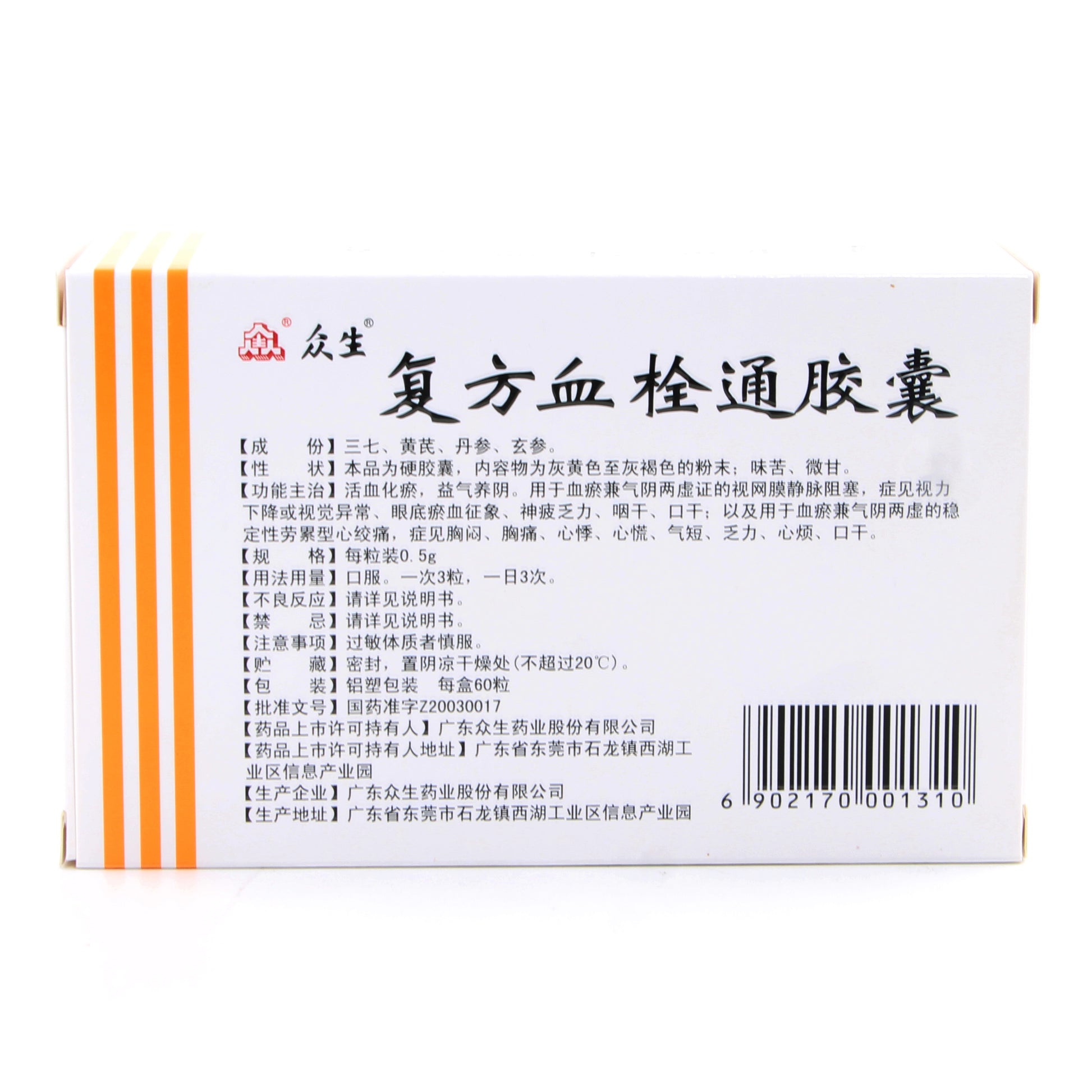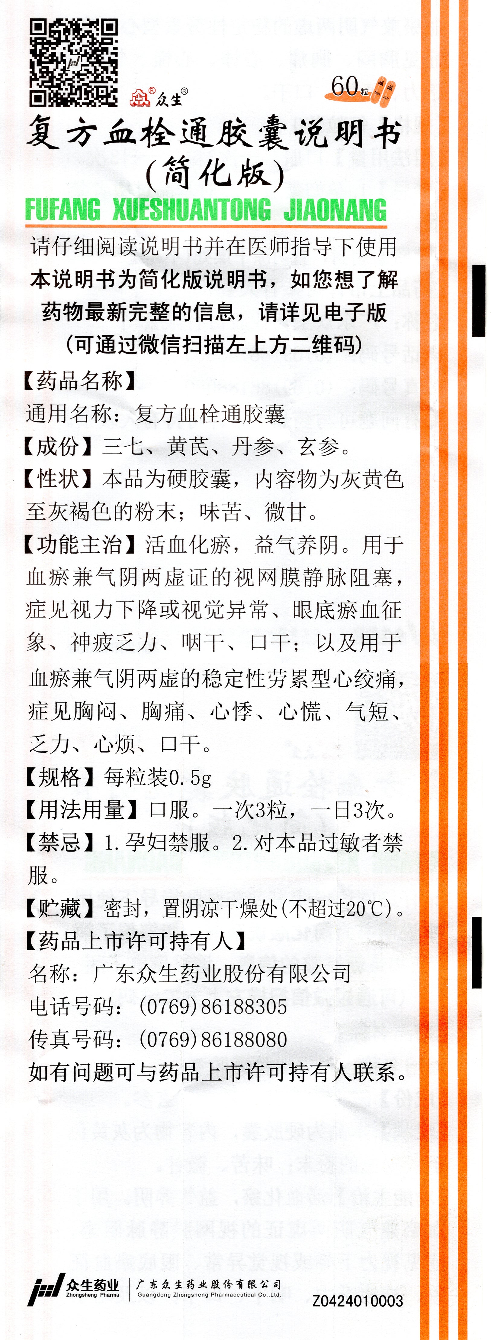 复方血栓通胶囊, Fufang Xueshuantong Jiaonang, Fu Fang Xue Shuan Tong Jiao Nang, 0.5g*60 Capsules, for Heart Health & Vision Support | Promotes Blood Circulation, Relieves Angina & Retinal Vein Occlusion Symptoms