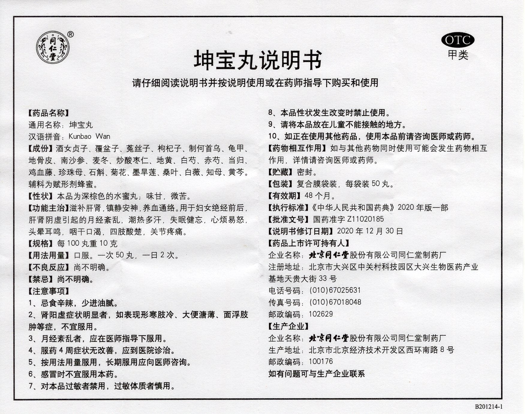 坤宝丸 Kunbao Wan, для женщин с климактерическим синдромом, для питания печени и почек и для расслабления нервной системы