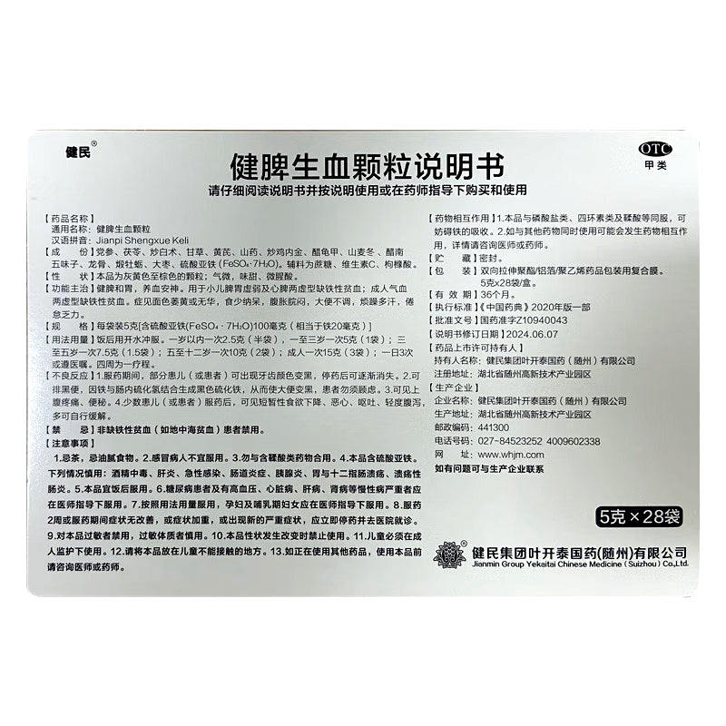 健脾生血颗粒, Jianpi Shengxue Keji, 5g*28 Bags, for Iron-Deficiency Anemia in Adults & Children