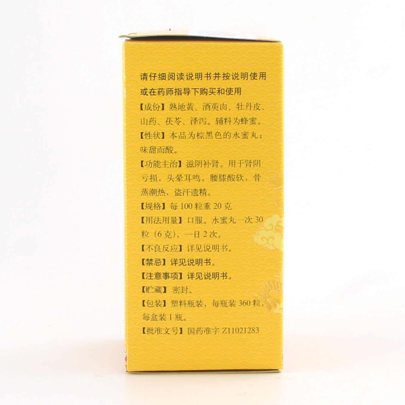 Rehmannia rehmannia, wine meat, peony skin, yam, Poria cocos, Ze Yuan. The excipients are honey.