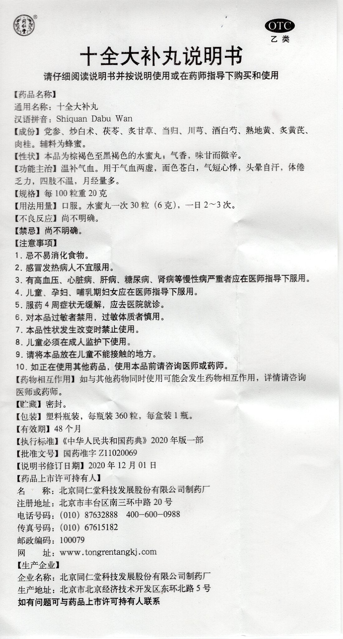 十全大补丸 Shiquan Dabu Wan, Nourishing Qi & Blood, Combating Anemia, Boosting Immunity, Anti-Aging & Revitalizing