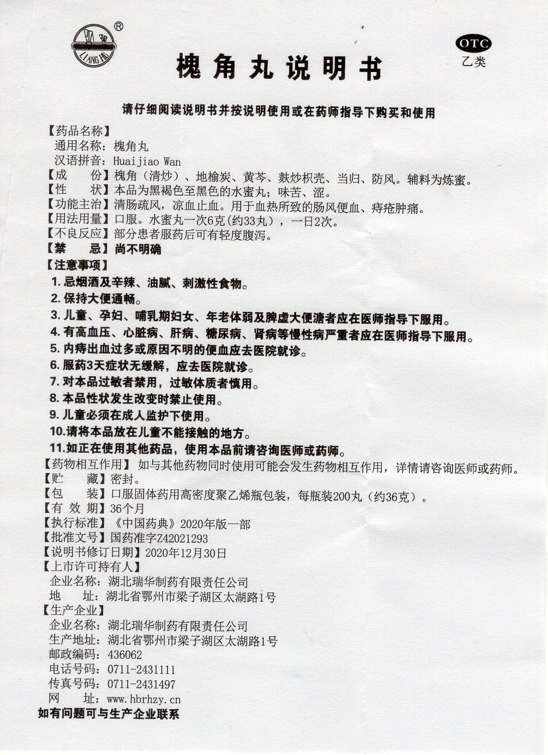 Huaijiao (stir-fried), elm charcoal, skullcap, fried citrus aurantium, angelica, parsnip. The excipients are honey refining.