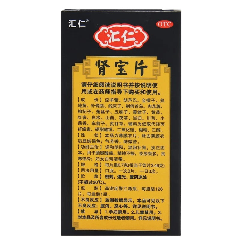 汇仁肾宝片, Huiren Shenbao Pian, Hui Ren Shen Bao Pian, 126tablets, Natural Kidney Support Pills for Fatigue, Cold Sensitivity & Urinary Issues