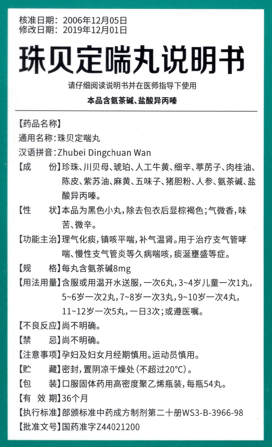 珠贝定喘丸, Zhubei Dingchuan Wan, Zhu Bei Ding Chuan Wan, 54 Pills, for Asthma, Bronchitis, and Chronic Respiratory Relief