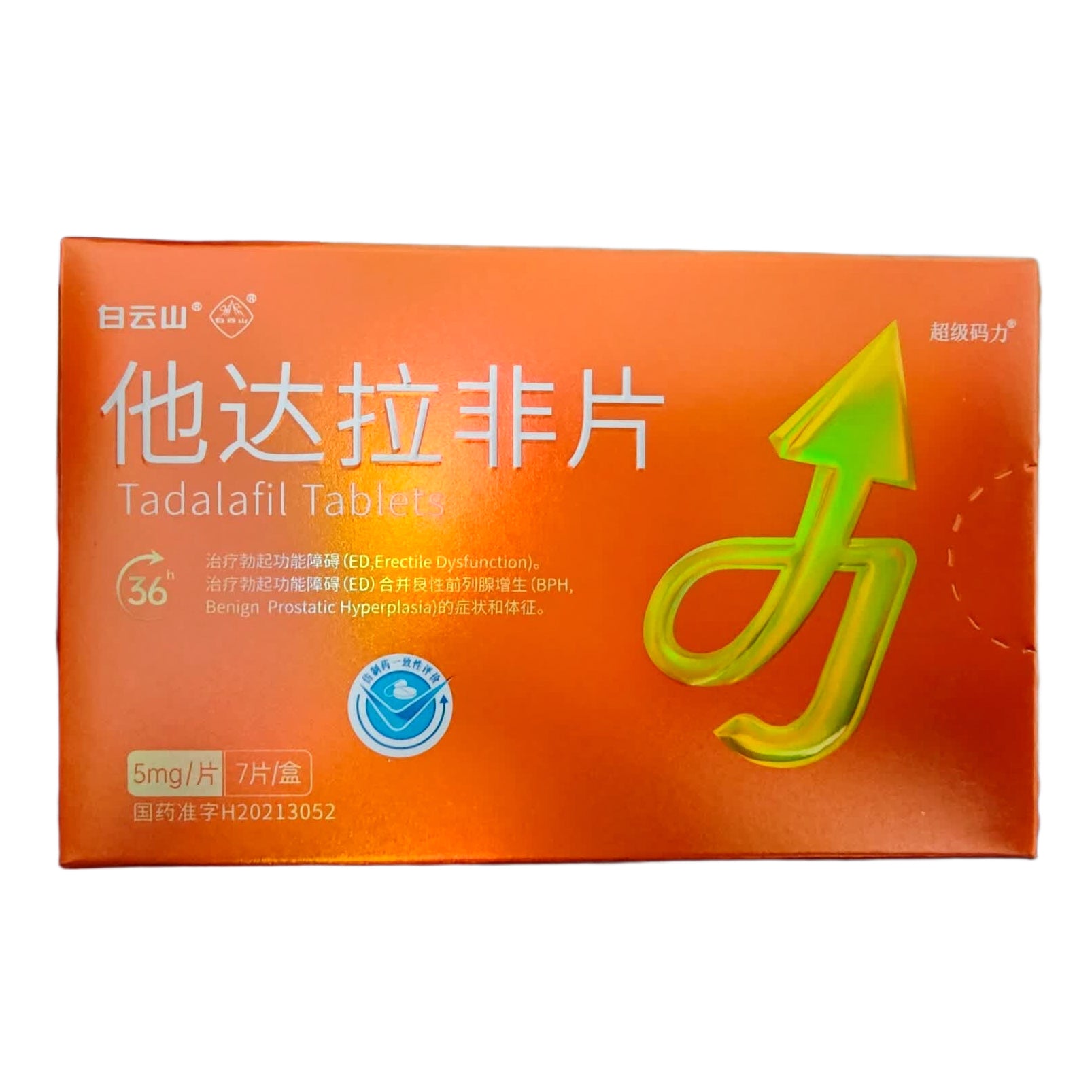 白云山超级马力, 他达拉非片, Baiyunshan, Tadalafil Tablets, 5mg (7 tablets/box), for Erectile Dysfunction, ED