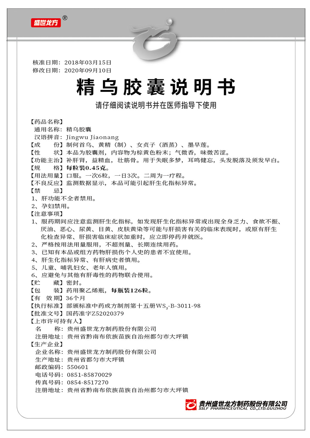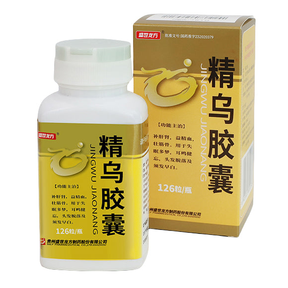 精乌胶囊, Jingwu Jiaonang, Jing Wu Jiao Nang, 126 Pills, Used for Insomnia, Tinnitus, Memory Loss, Hair Loss & Graying