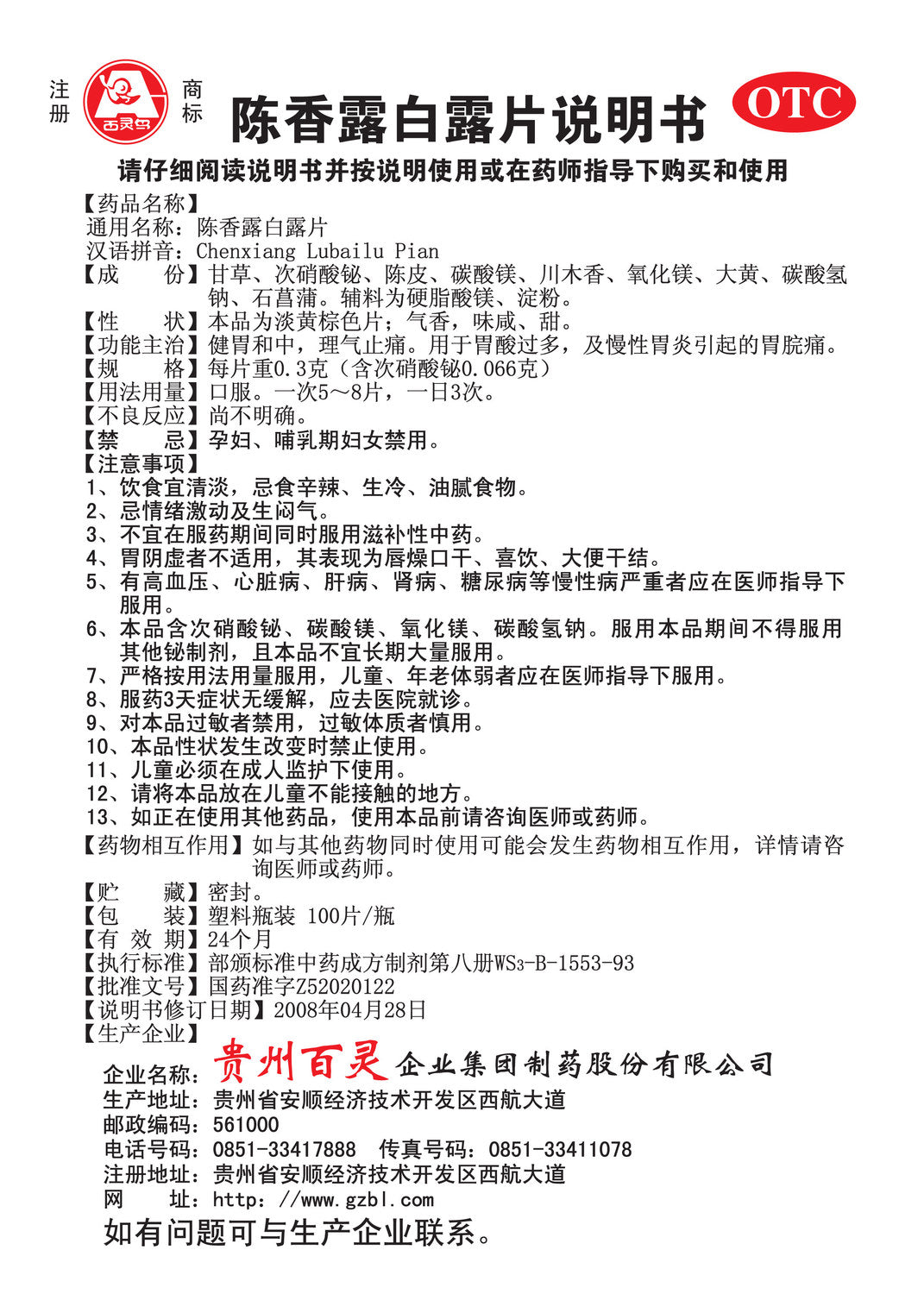 陈香露白露片, Chenxiang Lubailu Pian, Chen Xiang Lu Bai Lu Pian, 100 tablets, for Stomach Pain, Acid Reflux & Gastritis