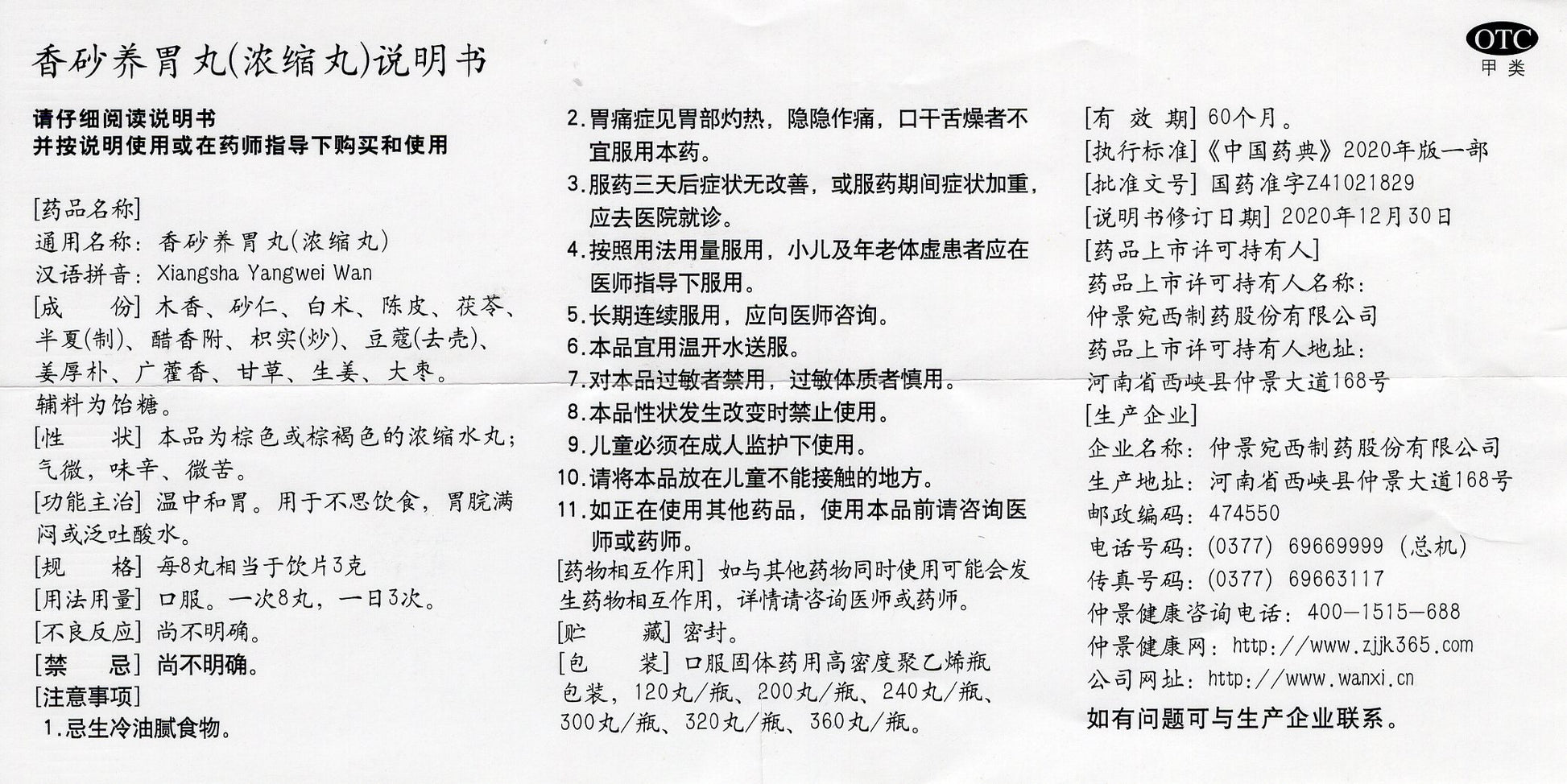 香砂养胃丸 Xiangsha Yangwei Wan, For Various Gastric Discomforts